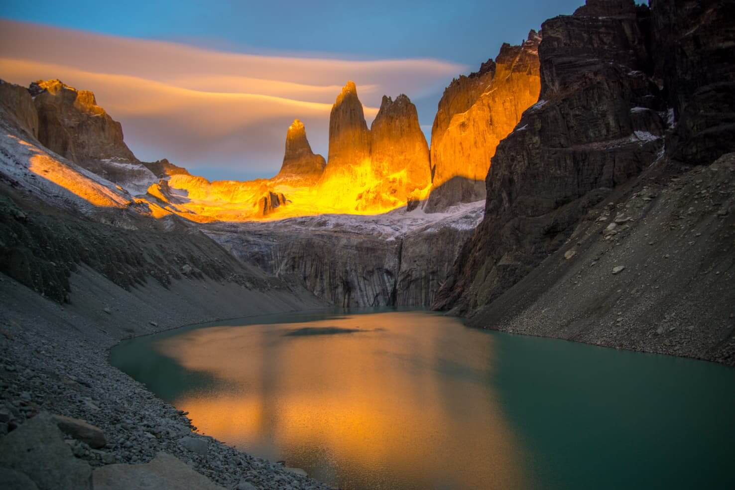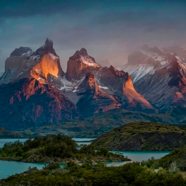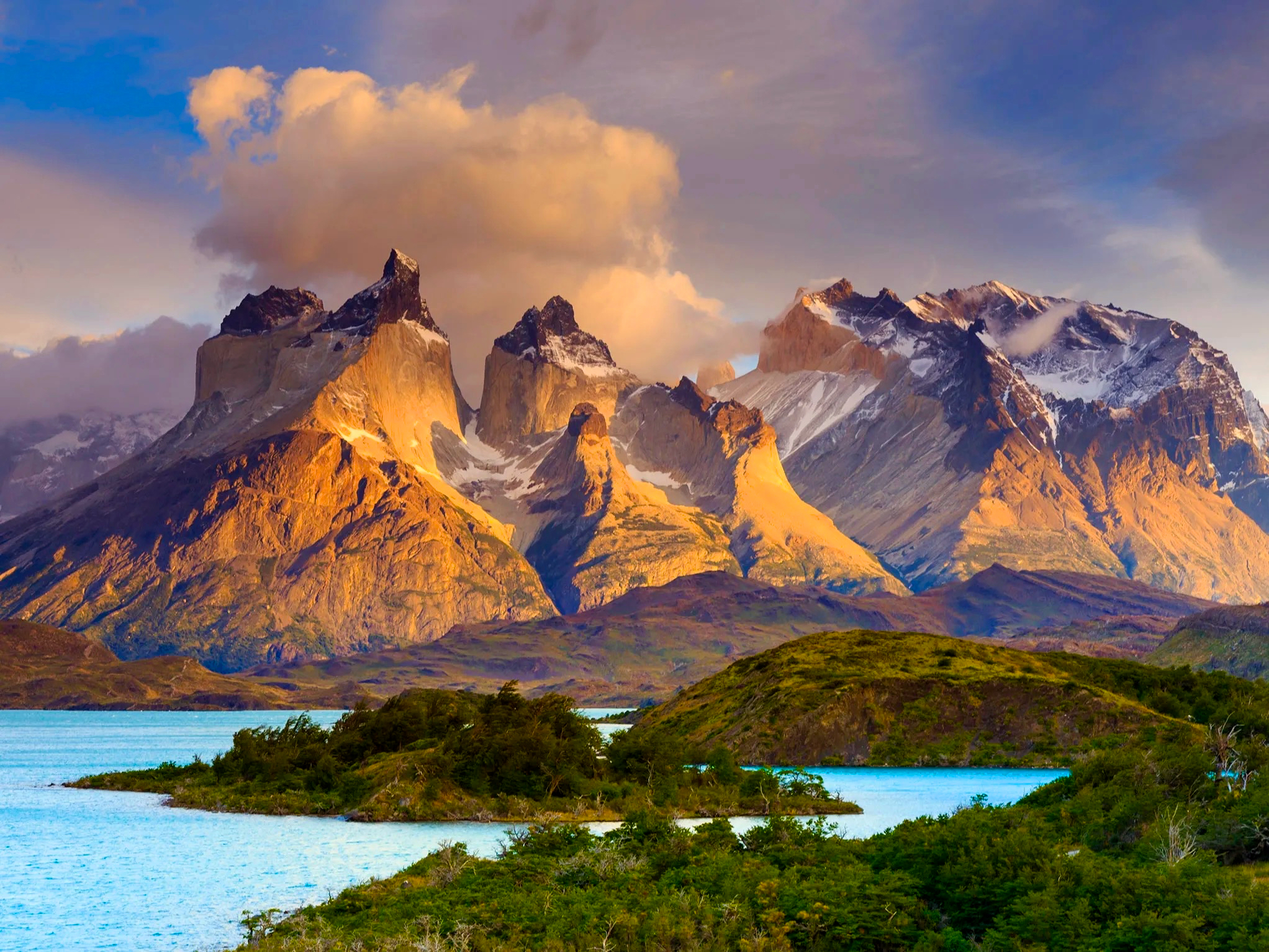 Parque Nacional Torres del Paine bathing in afternoon light: