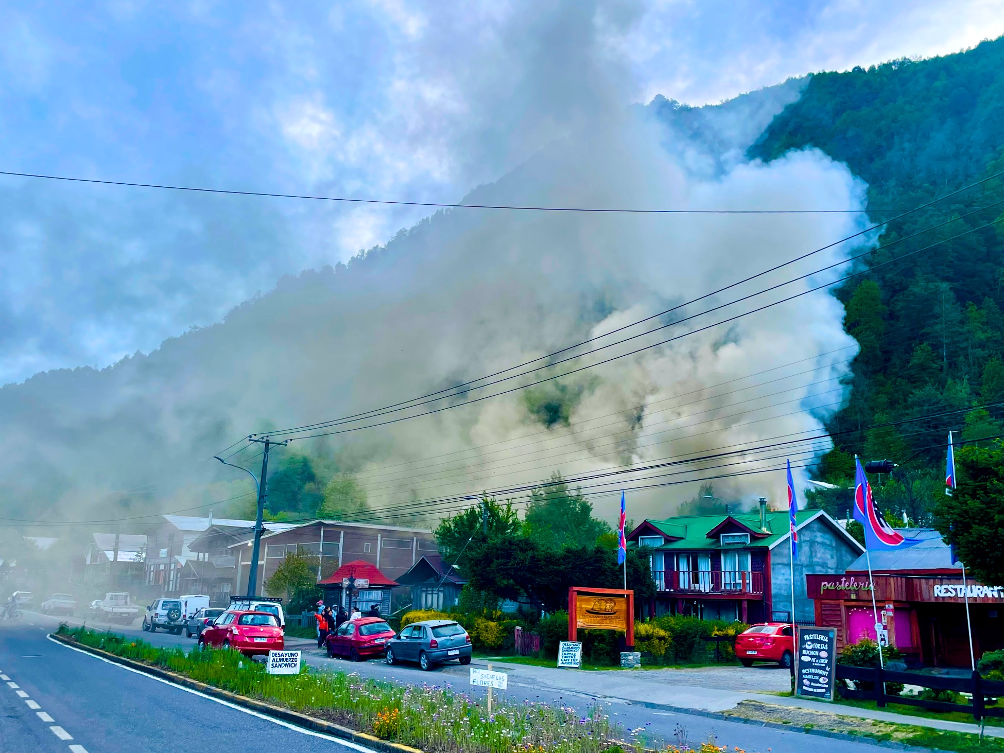 A little excitement in Currarehue, on the way back from the frontier, where I stayed last night. Someone’s house caught on fire and the entire town turned out to watch the firefighters fight and extinguish it: