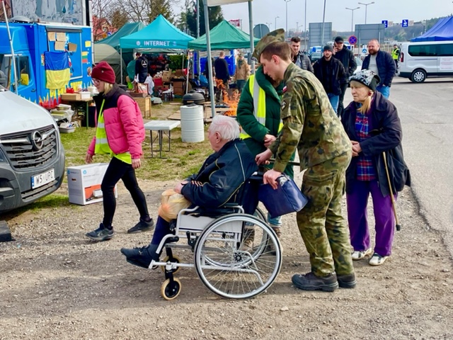 Here are some photos of recent days at our outpost in Hrebenne, literally on the Ukrainian border (the smell of diesel fuel from trucks running arms and supplies eastward and buses bringing refugees westward is a constant reminder…).
