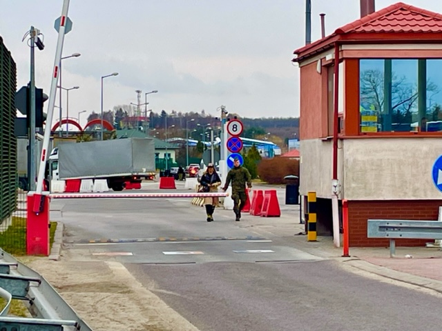 I drove to the Ukranian border yesterday, passing through Lublin, Chelm and then Dorohusk, literally across the river from Ukraine. Countless lorries and buses were headed in both directions, the trucks full when headed east and empty on their returns and the buses full when headed west and empty on their returns. I didn’t witness chaos, but instead a somewhat combined orderly and a bit disorganized flow of people and vehicles as the border area came into sharper focus.